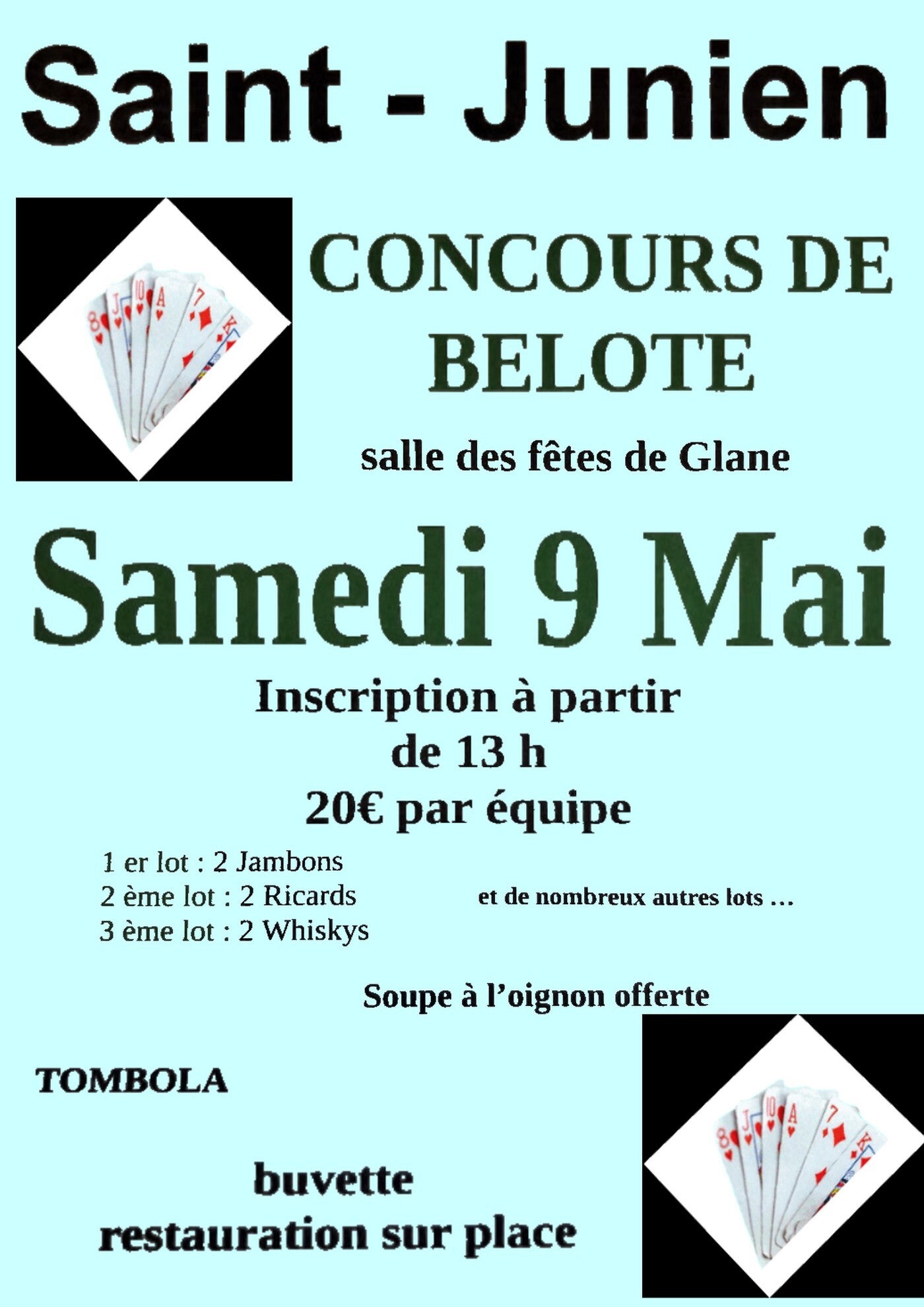 Que vous soyez organisateurs de Concours ou simplement joueurs de belote, communiquez nous les prochaines dates des Concours en Limousin.
